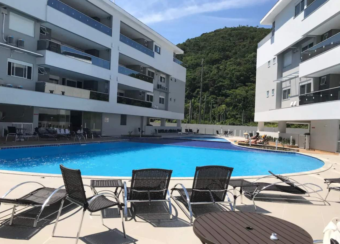 Excelente apartamento de 2 quartos com uma linda vista, em dos melhores condomínios de praia de Florianópolis, com split, moveis novos, ampla area com churrasqueira e internet. 2 vagas de garagem. Venha relaxar e desfrutar deste paraíso a 150 metros do mar que conta com piscina adulto e infantil, sauna, academia, playground, sala de jogos, cinema, baby rom e muito espaço. Segurança 24 horas. Você é nosso convidado!